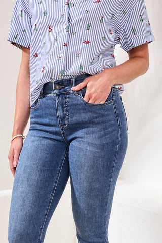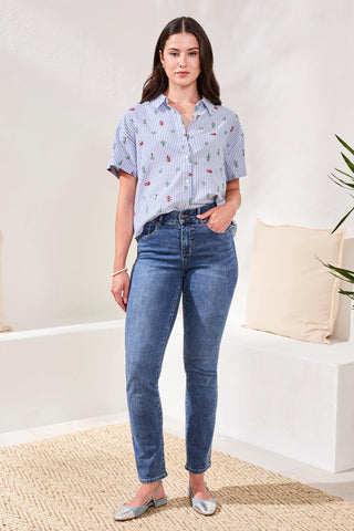 Our Sophia curvy fit straight leg jeans are designed to flatter in all the right places. With a comfortable elastic waistband that defines the waist, subtle darting above the back pockets for a lifting effect, and soft stretch denim that moves with you while maintaining its shape, this style offers the perfect blend of structure and comfort. Finished with a mid-rise, classic five-pocket design, and a 32" full length, it's the pair you’ll reach for again and again.