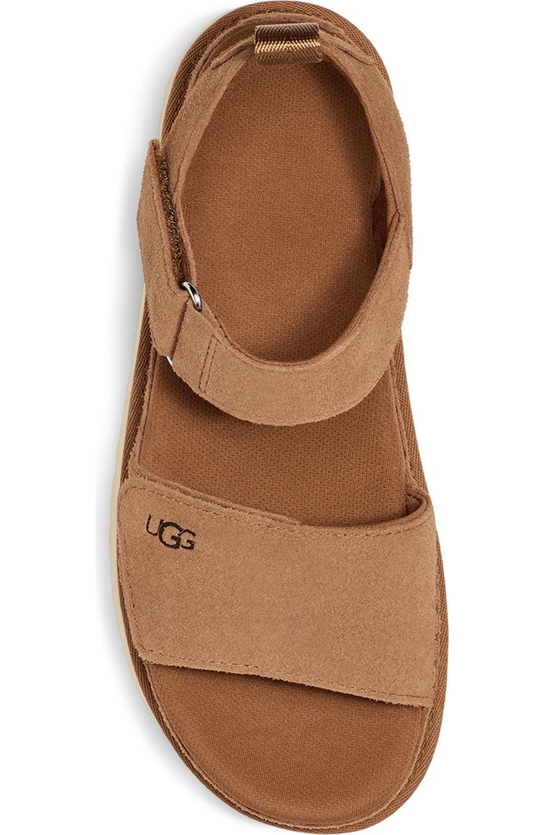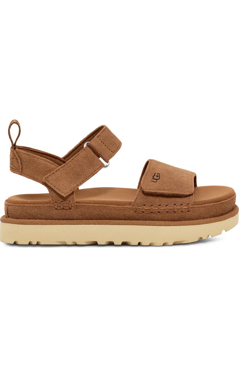 Heat-embossed logos lend signature detail to a suede platform sandal crafted with a plush SugarSole EVA sole for comfort under each step.