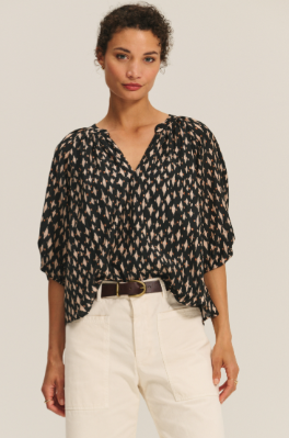 Printed Cotton Blend 3/4 Sleeve Top