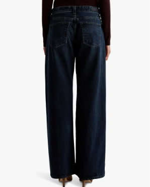 The AG® Jeans Adria Low Rise Baggy Wide Leg In 2 Years Prose hangs on the hip for a slouchy, relaxed look. The fit is relaxed in the hip, wide in the leg, and meant to puddle at the hem for that effortless, off-duty vibe. The low-rise jeans feature belt loops, zip-fly, and button closure.
