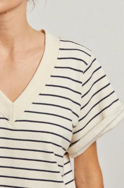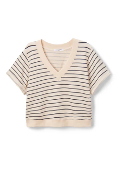 meet the briggs sweatshirt, a fresh spin on a fan favorite. made from soft french terry with a deep v-neck and short sleeves featuring a built-in rolled cuff (yes, it stays put). slightly boxy, banded at the waist, and ready to sub in for your usual tee.