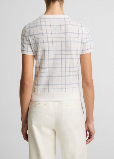 Plaid Cashmere-Blend Short-Sleeve Sweater
