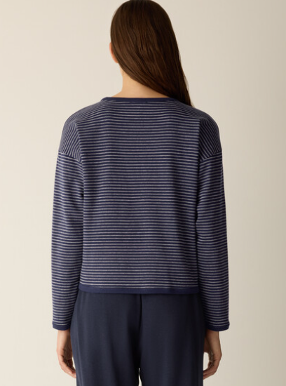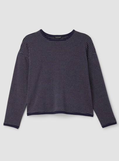 Soft and simple. The round neck box-top in a striped version of our best-loved terry—a knit with natural stretch and a fleecy interior. So soft, we call it the "Hug."