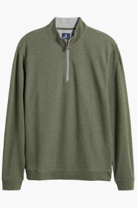 A sleek welt-zip placket with a logo-embossed pull refines the casual silhouette of this smooth cotton-blend pullover with a warm, layer-friendly neckline.