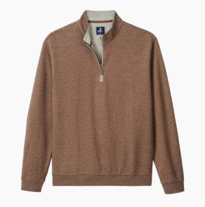 A sleek welt-zip placket with a logo-embossed pull refines the casual silhouette of this smooth cotton-blend pullover with a warm, layer-friendly neckline.