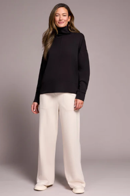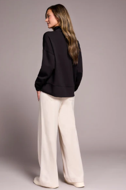 Elevate your casual wardrobe with this contemporary knit top, crafted from soft scuba fabric for a sleek, structured feel. The funnel neckline and drop shoulders create a relaxed yet polished silhouette, while front stitching adds subtle detail. Elasticated cuffs and hemline provide a comfortable fit, and long sleeves offer cozy coverage for cooler days.?