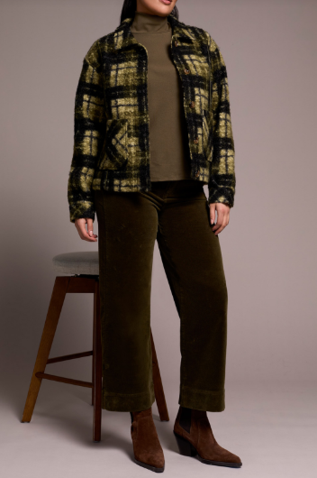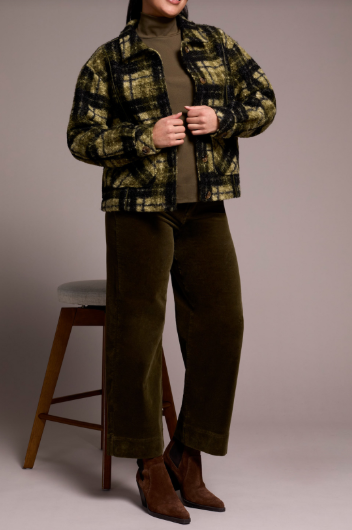 The Textured Plaid Short Jacket with Lining offers a polished and structured look, crafted from rich plaid fabric enhanced by a smooth lining for added comfort. Its tailored cut and refined texture make it an elegant layering piece, perfect for elevating both professional and chic casual outfits.