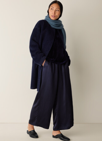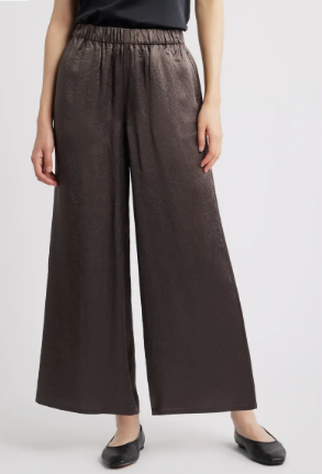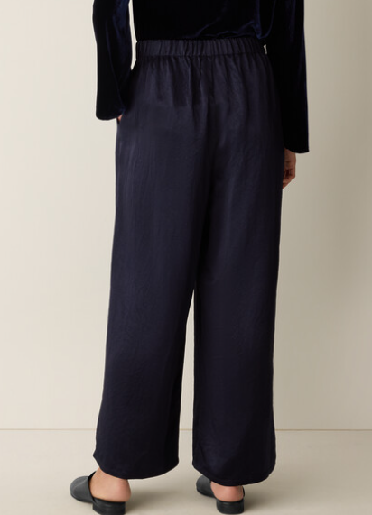 A classic shape, transformed. The wide-leg pant in a fluid satin weave. Wear it, dance in it—even spill on it. Made in a Fair Trade Certified™ factory.
