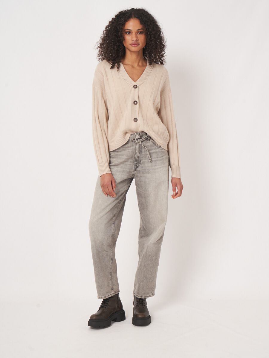Luxuriously soft and supple, this ribbed cashmere blend cardigan can sit atop a silk or satin dress for an evening out, or complete a nonchalantly casual look with a cozy edge. Wool for structure and weigh, cashmere for softness and warmth.